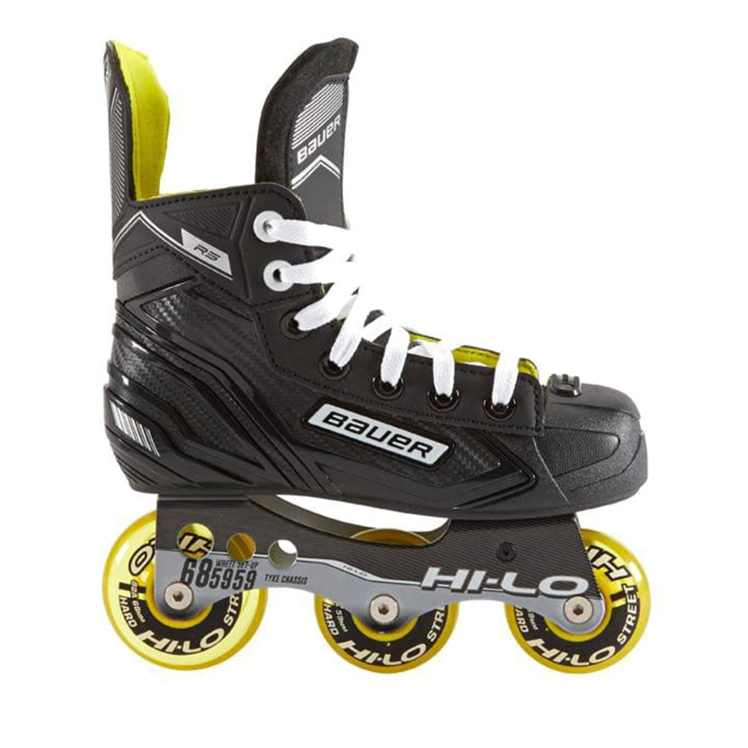 The Bauer recreational skates feature a two-piece, Hi-Lo Vanguard Ventilator steel chassis that offers an aggressive attack angle for maximum agility. These roller hockey skates use Hi-Lo Street outdoor wheels and Hi-Lo Abec-5 bearings to offer great speed, impressive durability and intensive grip on outdoor surfaces like concrete and asphalt.